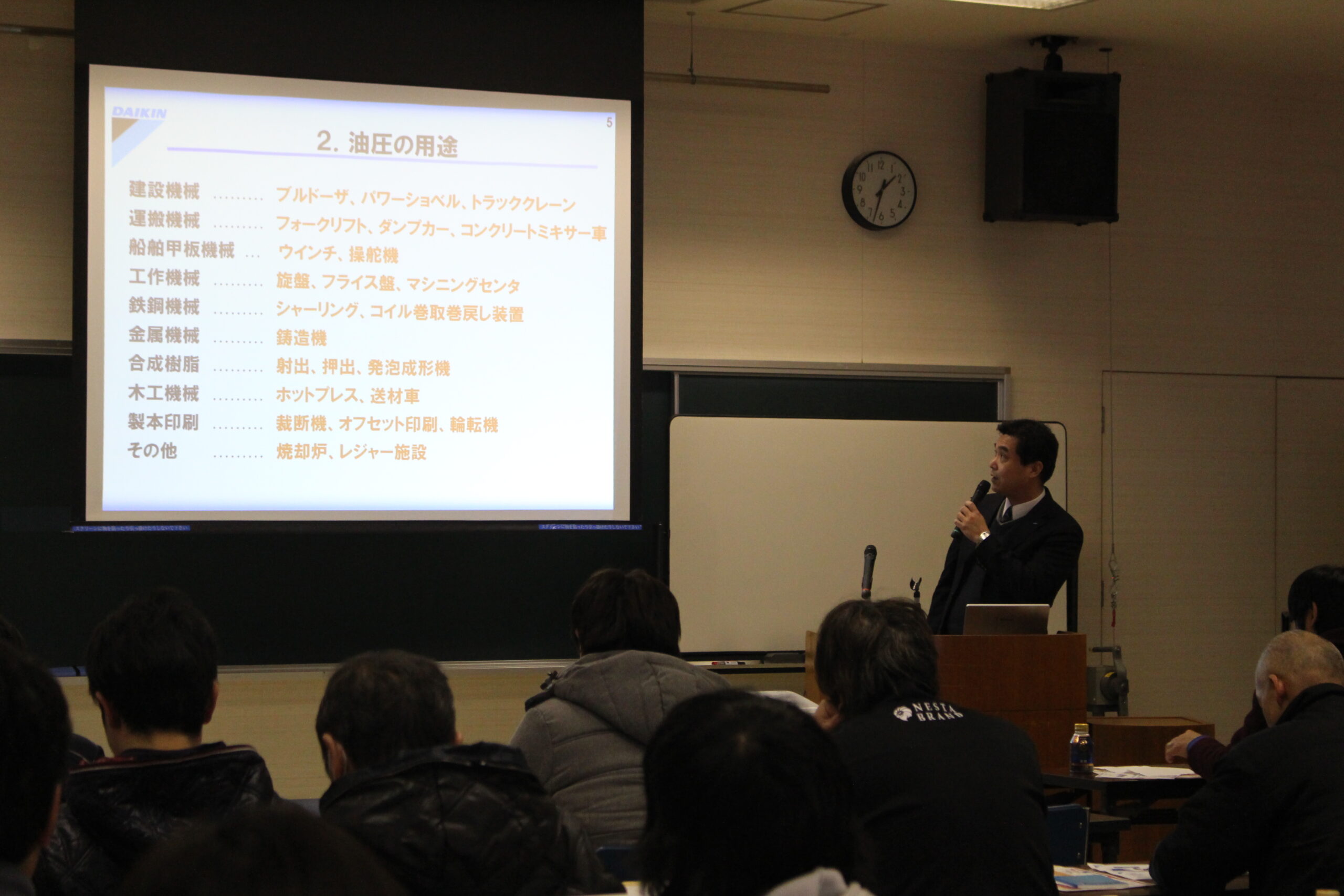 石川商事で去る 2 月 23 日に周南市地域地場産業振興センターで 「油圧機器の基礎技術(初級編)」のテーマで ダイキン工業株式会社から講師をお招きして次の項目でセミナーを行いました。