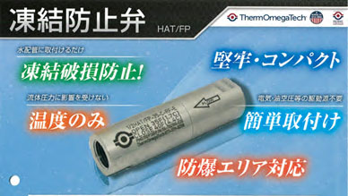 自己完結型の温感自力式開閉バルブなので、温度変化のみで開閉するので電気を使用しないエコロジーな凍結防止バルブです。
