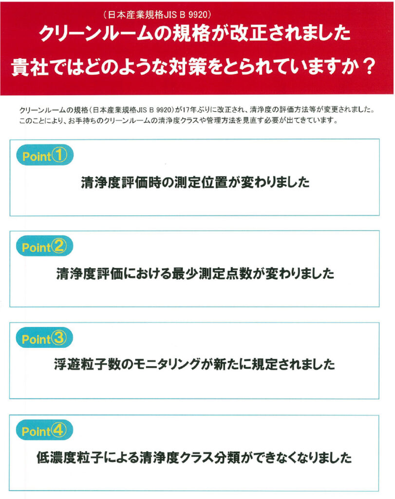 このJIS改正で、既設のクリーンルームの清浄度UPが必要になった際には、