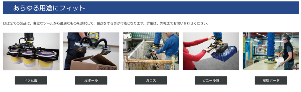TAWI真空リフターは、袋、箱、シート、長尺製品、パレット、ドラムなど、何でも持ち上げることが出来ます。