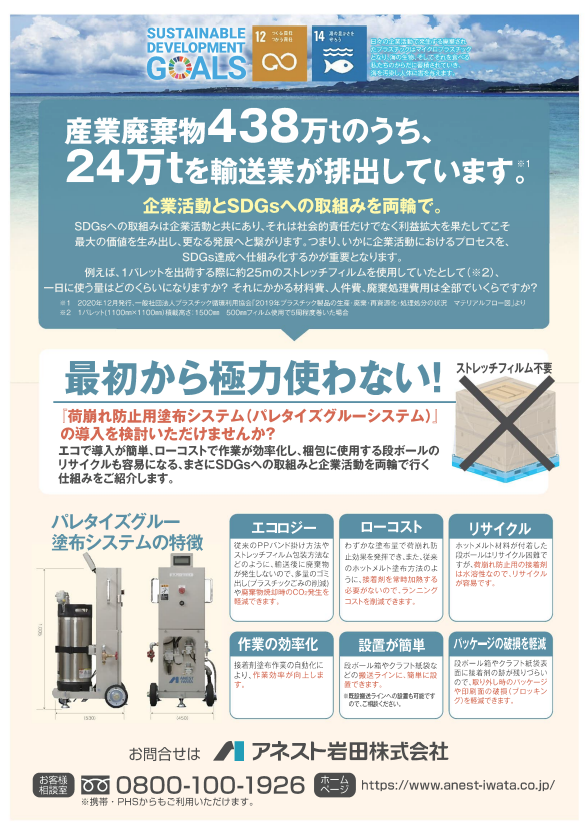 【石川商事メルマガ2022年12月】SDGs 荷崩れ防止用塗布システムでストレッチフィルムごみを削減しませんか?