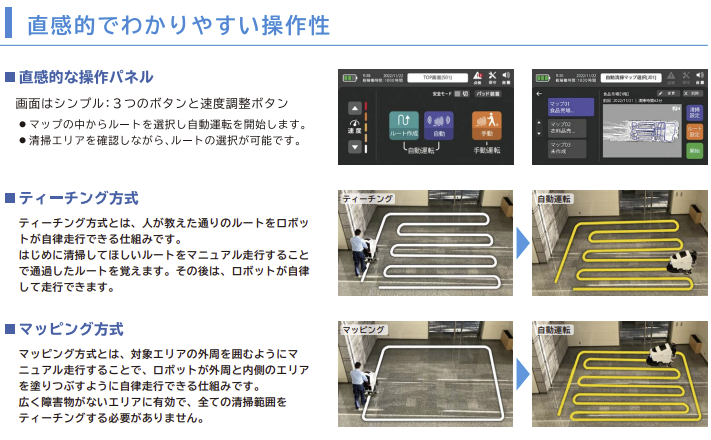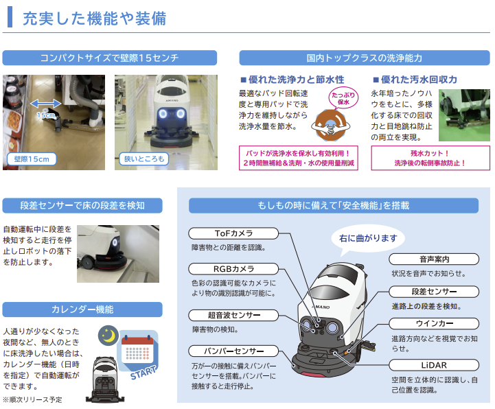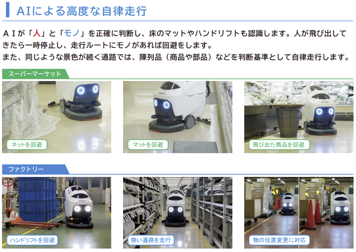床清掃はAIにお任せ、AIによる高度な自律走行を実現。