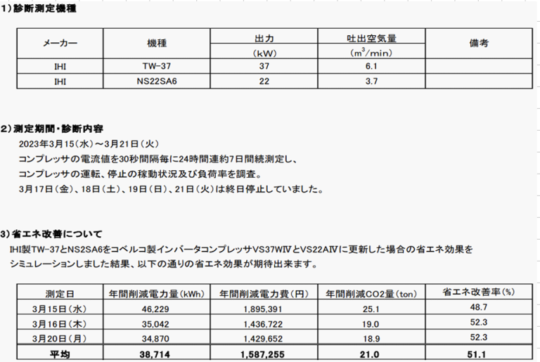 弊社がご提案するコンプレッサーに特化したクイック診断でのシュミレーションを利用することで