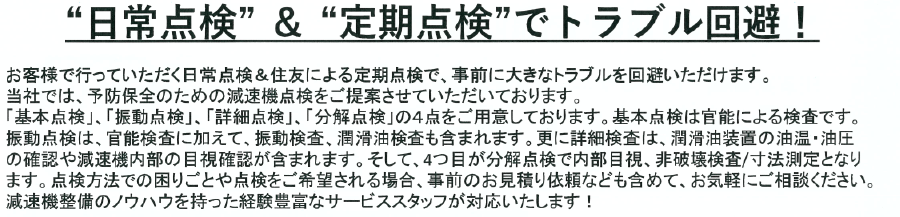 住友重機械工業㈱では、予防保全のための減速機点検をご提案させて頂いております。