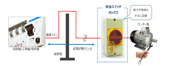 ・稼働中の機械を停止させ安全を確保するスイッチどのような安全対策になるのか??・点検メンテナンス時の機械の誤った再起動を防ぐ