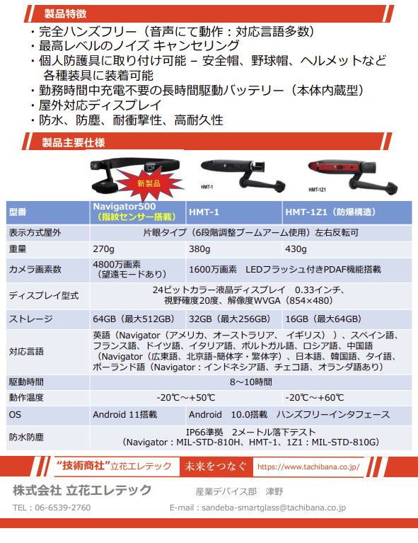石川商事株式会社です。今回は、㈱立花エレテックのスマートグラスを紹介いたします。