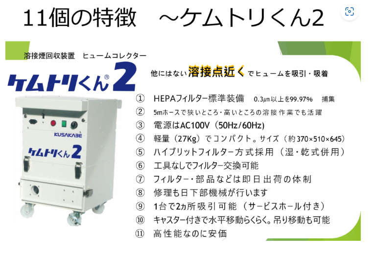 今回は、ポータブル溶接ヒューム回収装置『ケムトリくん2』をご紹介します。
