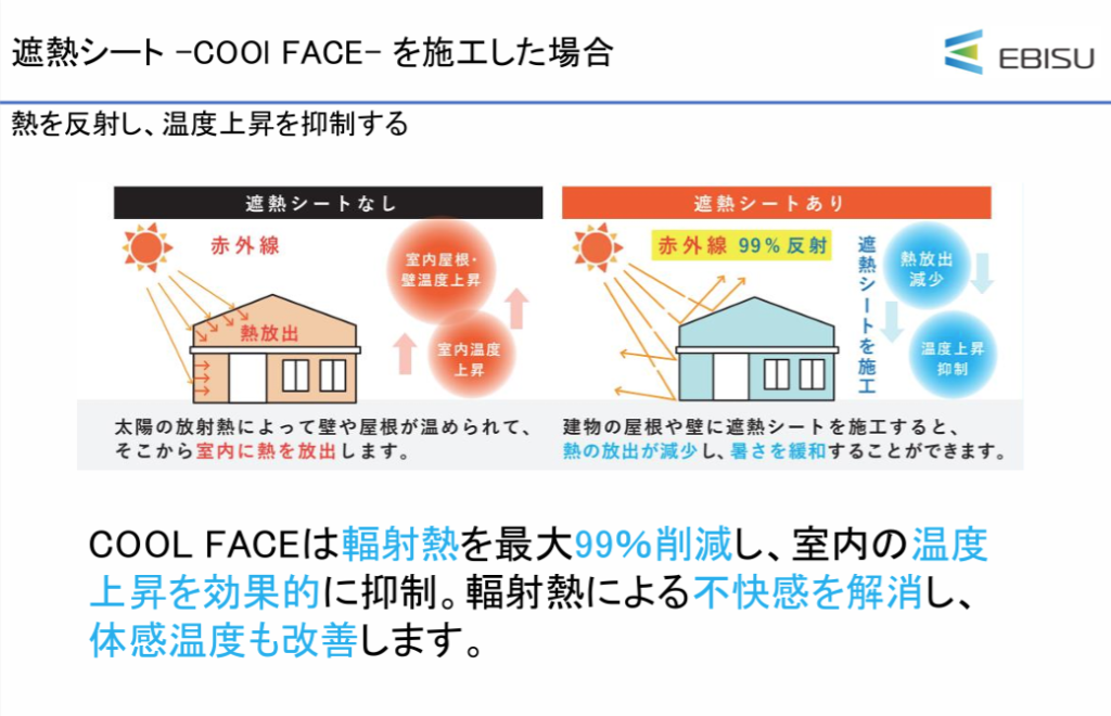 また、大型天井ファンと合わせて遮熱シートを天井に施工すれば