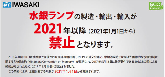 - 【石川商事メルマガ2020年12月第2号】水銀ランプ2021年禁止となります。(製造・輸出・輸入)